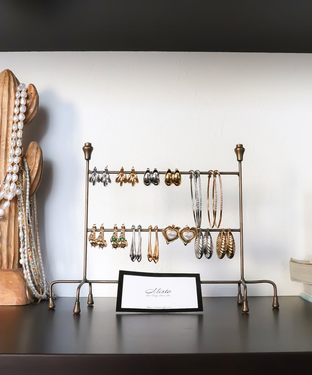 ぷっくりとしたハートの樹脂パールとメタルの組み合わせは、スパイスとしてのアイテムに。