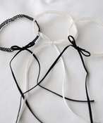 少し長めのベルベットリボンはロマンティックでアンニュイな雰囲気。