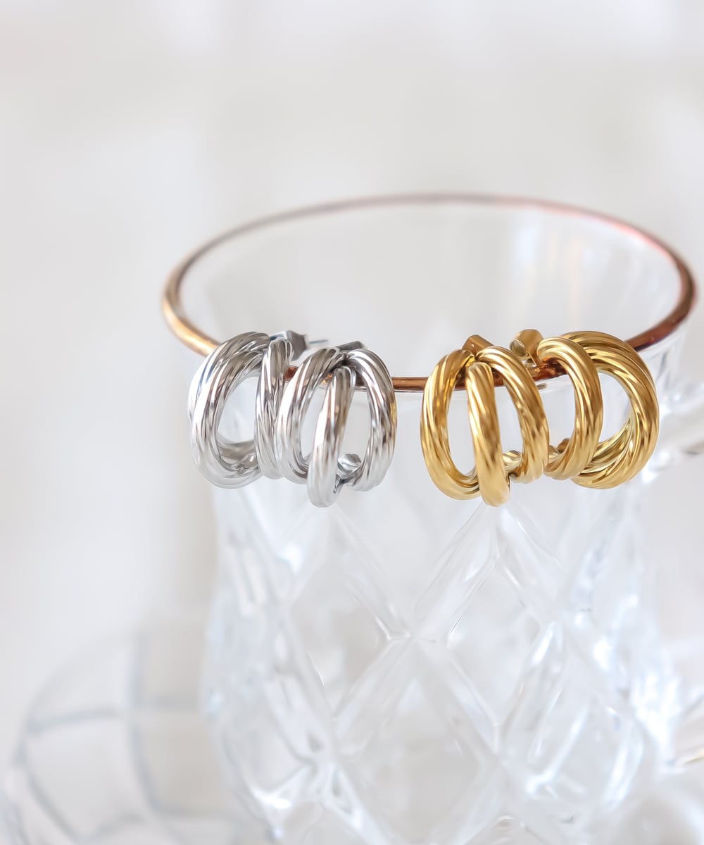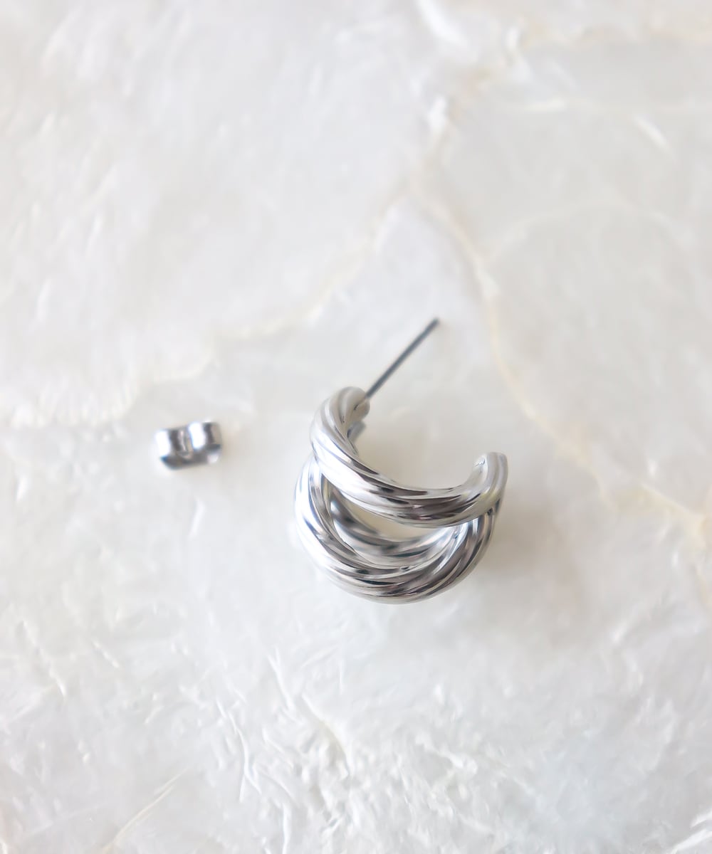 ツイストを重ねたようなデザインのサージカルステンレス製ピアス。